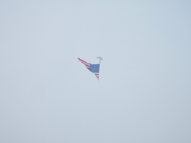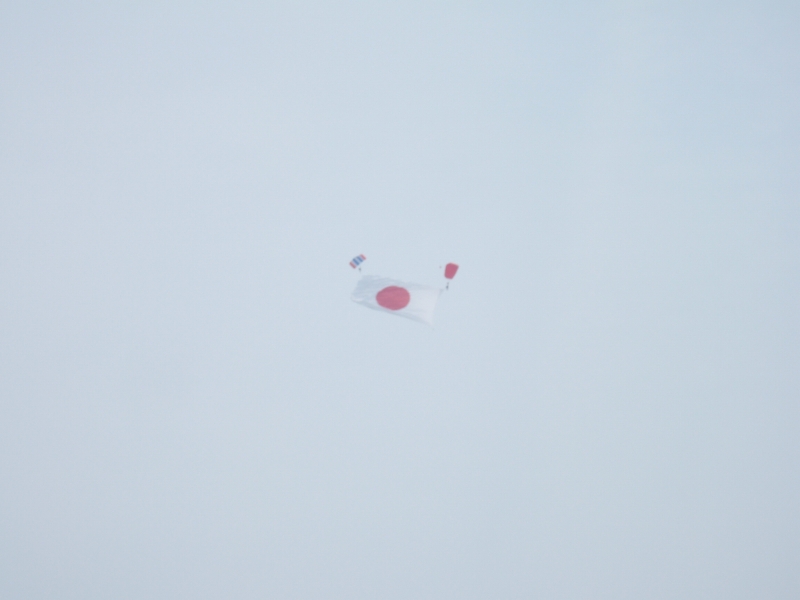最後のほうを見るとわかりますがこの国旗はでかいです。なんでも2000平方フィートあるとか。これをもって飛び降りるジャンパーはすごい。