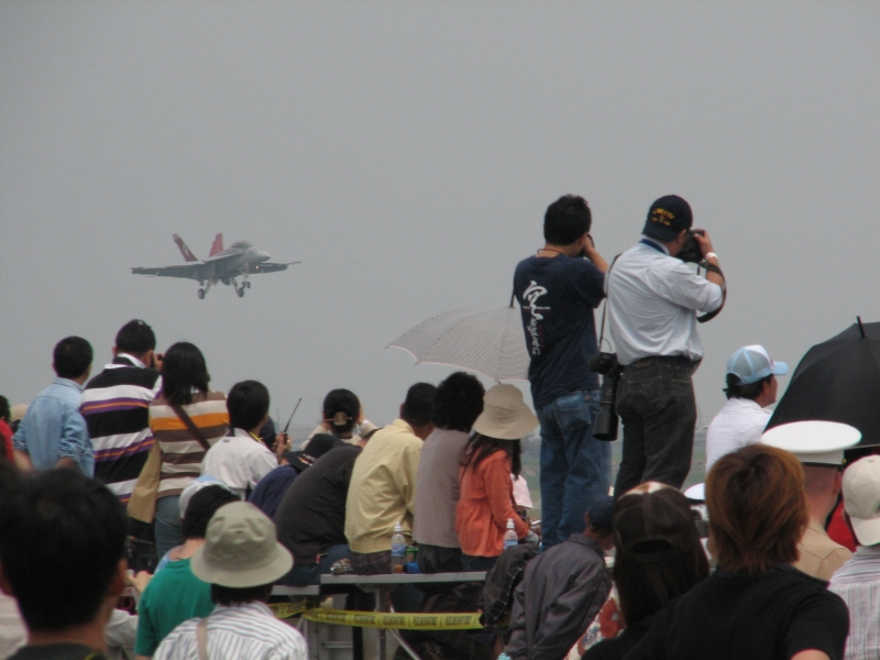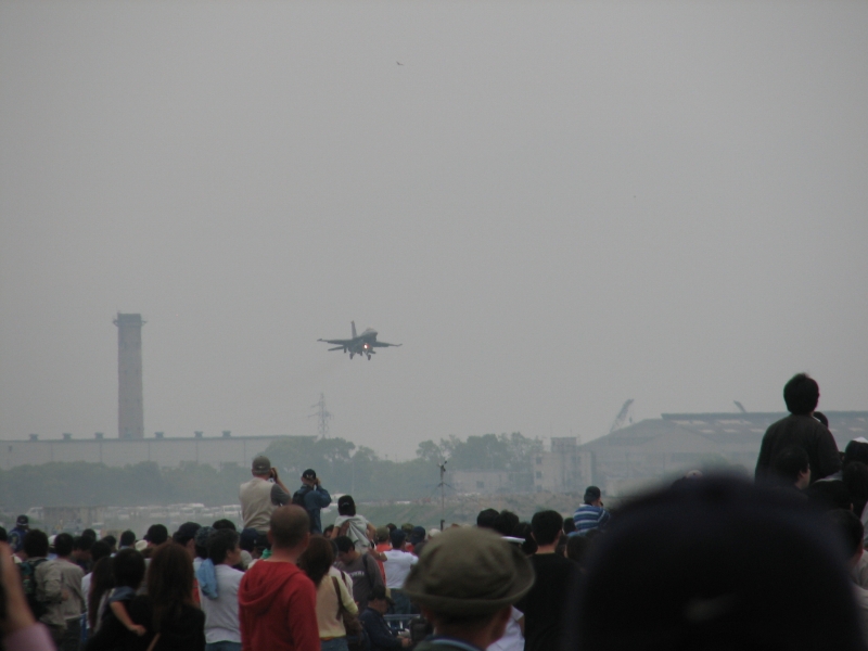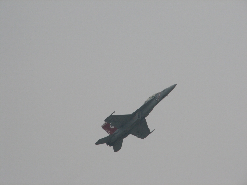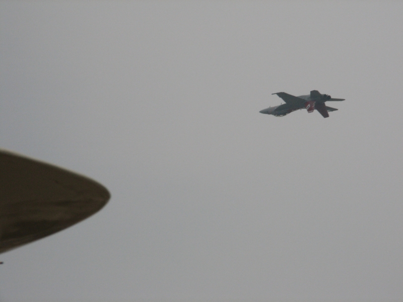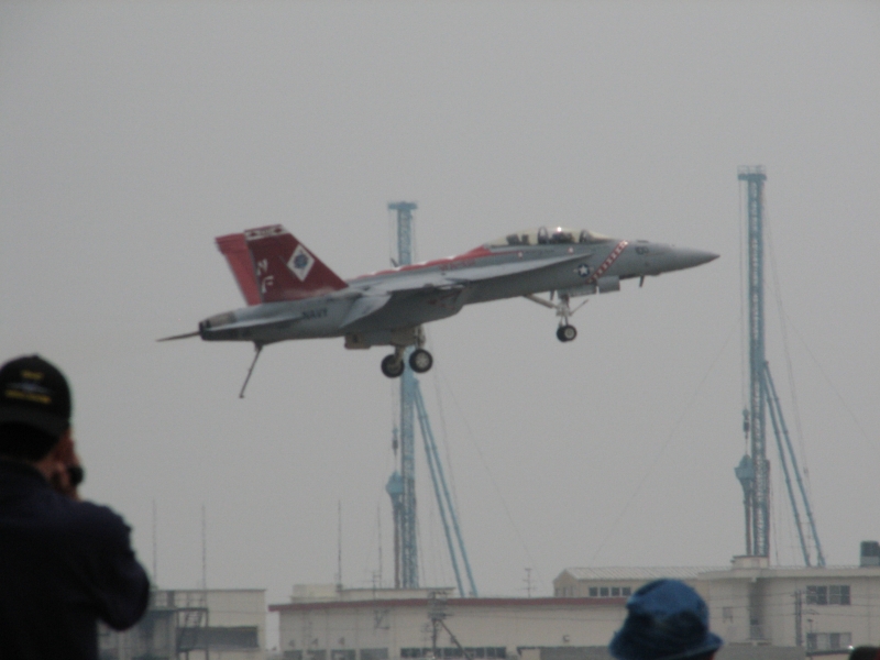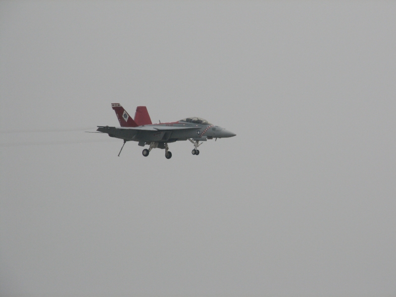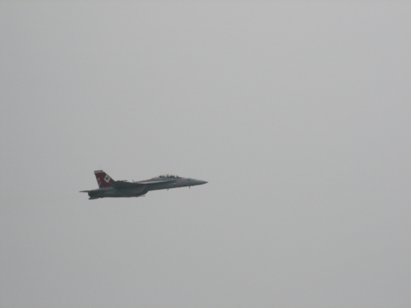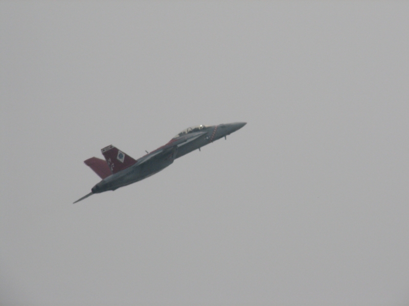 F-18Fの低速での性能を見せ付けるような超低速パス。先ほどまでのスピーディーな機動に比べるとまるでとまっているような錯覚が出てきます。