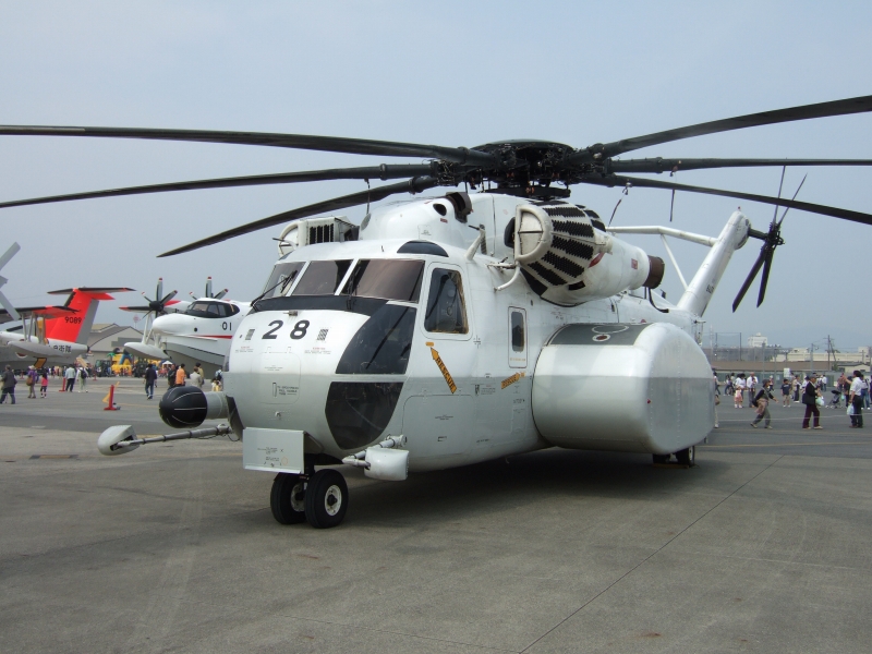 MH-53E。とんでもなくでかかったです。西側最大のヘリコプターであり、20年以上使われている古強者です。UH-1には負けますが。
