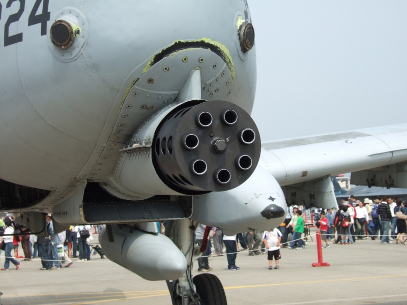 GAU-12アベンジャー。30mmという破格の口径を持つガトリング砲の破壊力はすさまじく、トラックに打ち込むと1発でばらばらになったといわれるほどです。