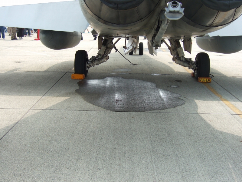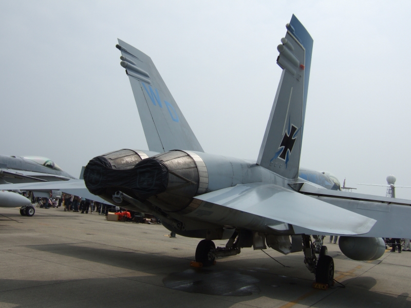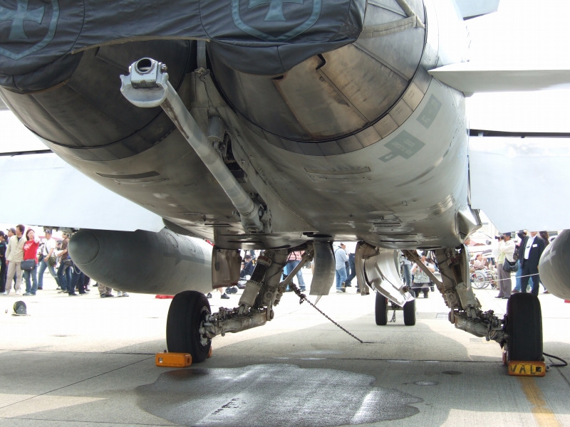 F-18Cのアレスティングフック。F-15などとは桁違いの頑丈さが艦載機の風格を出していますね。